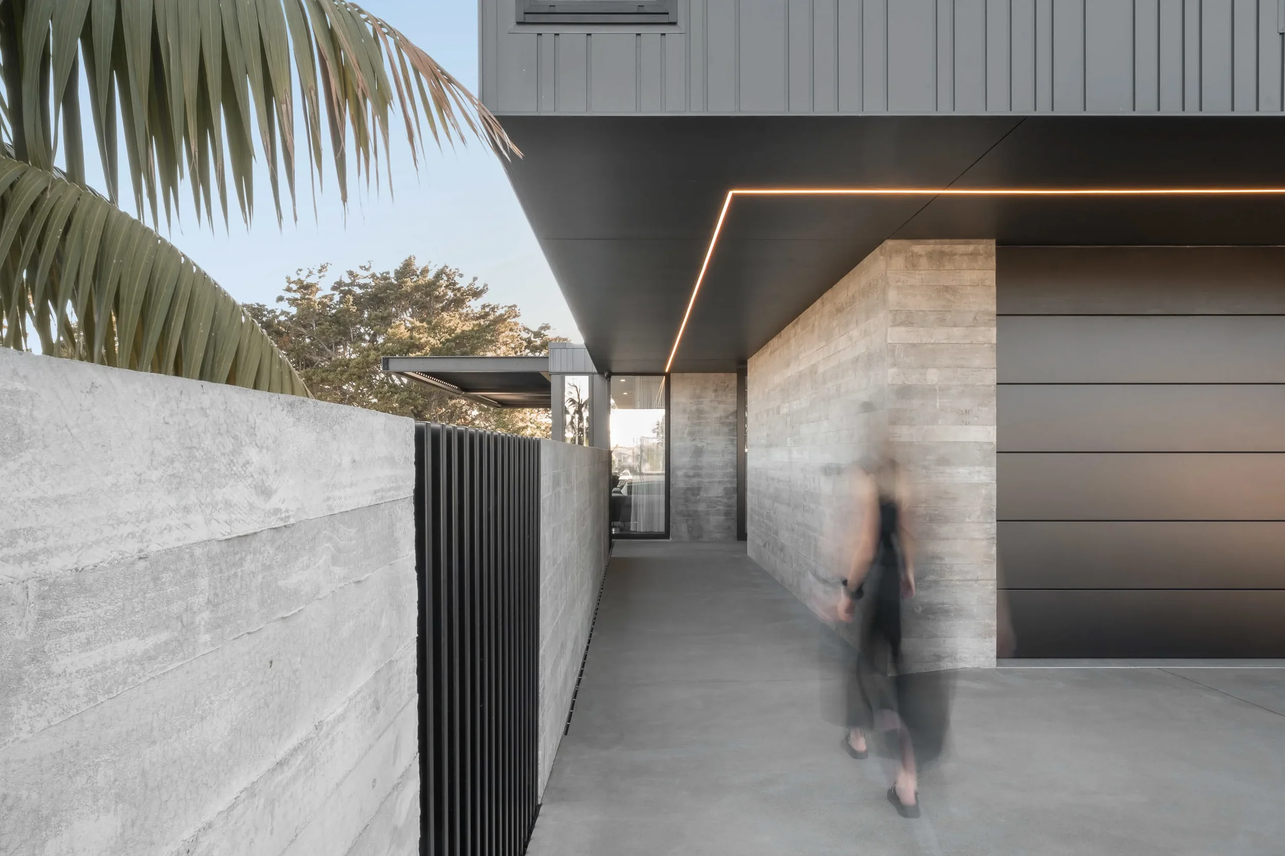 This contemporary family home in Herne Bay, one of central Auckland’s most prestigious suburbs, stretches dramatically along the clifftop and partially overhangs the harbour below. Designed for a busy family with teenage children, the residence responds to its exceptional setting with a bold, rectilinear form that embraces panoramic harbour views through the native pohutukawa trees.