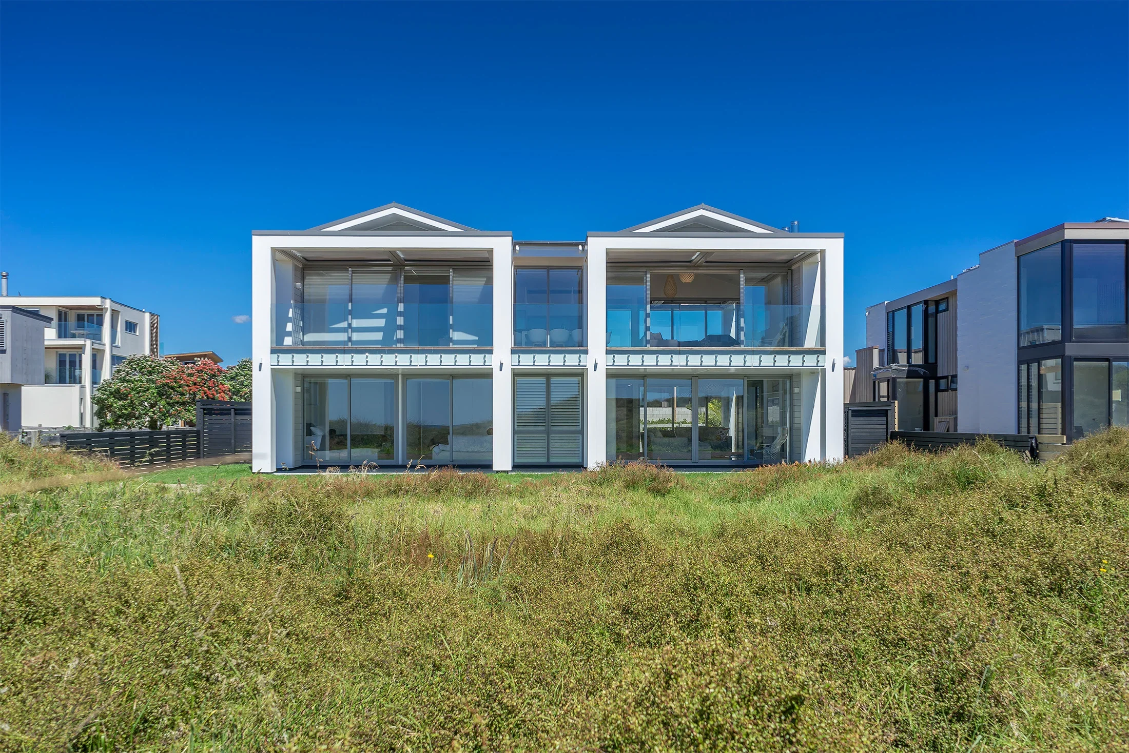 SET BACK FROM THE CRISP WHITE SANDS AND GENTLY UNDULATING DUNES OF OMAHA BEACH, THIS MODERN BEACHFRONT HOME WAS DESIGNED WITH SEPARATE SPACES FOR ADULTS AND CHILDREN TO ENHANCE THE HOME’S VERSATILITY AND PROVIDE A CONTEMPORARY COASTAL RETREAT FOR OFFSHORE CLIENTS.