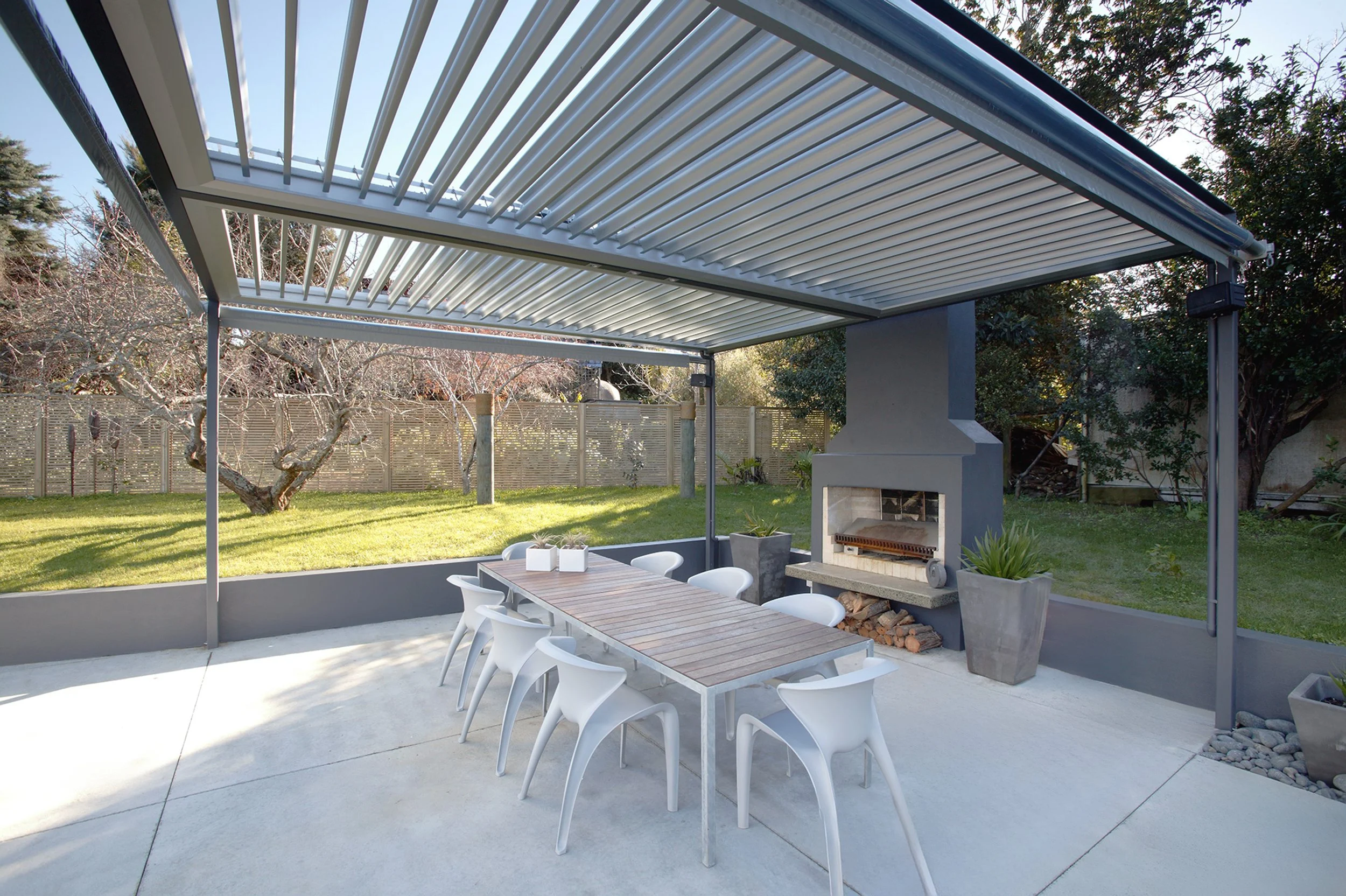 The sleek, contemporary architecture is defined by clean lines, flat and low-pitched roofs and extensive panes of glass, flooding interiors with natural light and creating an airy, open feeling throughout. Dark horizontal weatherboard siding is complemented by a solid concrete base and extensive glazing, giving the home a refined, modern edge. At the rear, a large open courtyard with concrete paving, minimal landscaping and integrated lighting offers the perfect setting for gatherings. Seamlessly connecting indoor spaces with outdoor entertaining, the courtyard becomes the heart of the home.